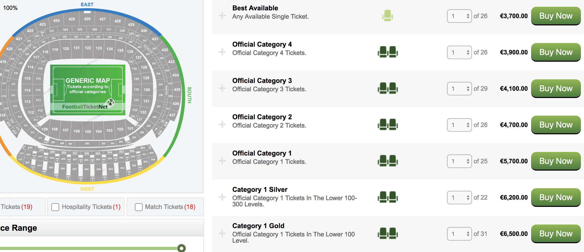 Champions entradas para ver la final de champions en el bernabéu: Los precios de la final en la pasada temporada fueron los siguientes: